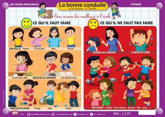 FICHE EFFAÇABLE LA BONNE CONDUITE À LA MAISON - À L'ÉCOLE