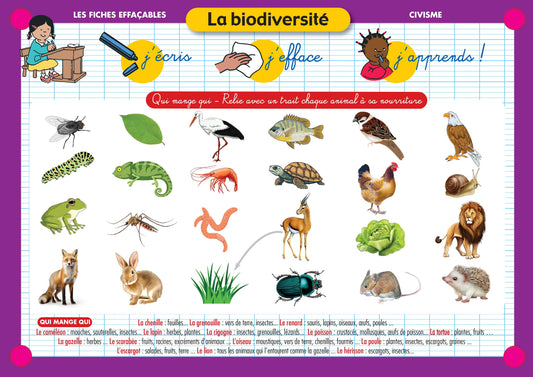 FICHE EFFAÇABLE LA BIODIVERSITÉ
